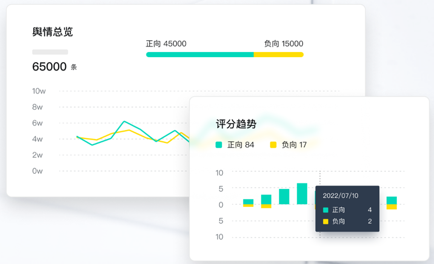 能够基于人工智能构建语境模型,提炼观点语句,定性语义正负倾向及话题类型,挖掘敏感言论,同时对排查出的负面语句进行模型增量学习,增强模型的识别能力,帮助用户实时监控话题中正负面资讯量的走势及热门观点。助力运营团队定位负面内容高发时段。