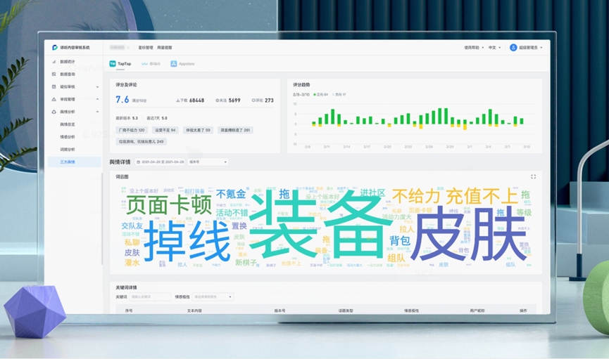 那么,在当前“信息爆炸”的大数据时代,游戏厂商应该如何快速、准确、全面地了解行业舆情、进行产品的舆论引导呢?谛听安全给出了专业的游戏舆情监控方案。谛听安全是一款能够基于语言分析、情感分析等人工智能技术全方位分析平台内用户舆论,实时监控舆论数据,助力企业了解平台舆论动向的第三方服务商。